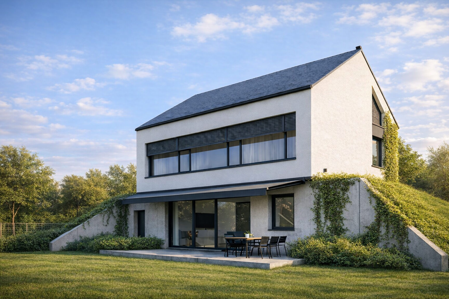- fotowoltaika – wybrałem wstępnie system Solroof zintegrowany z dachem ze względu na estetykę; uzupełniony o magazyn energii daje dużą niezależność i idealnie współpracuje z pompą ciepła,