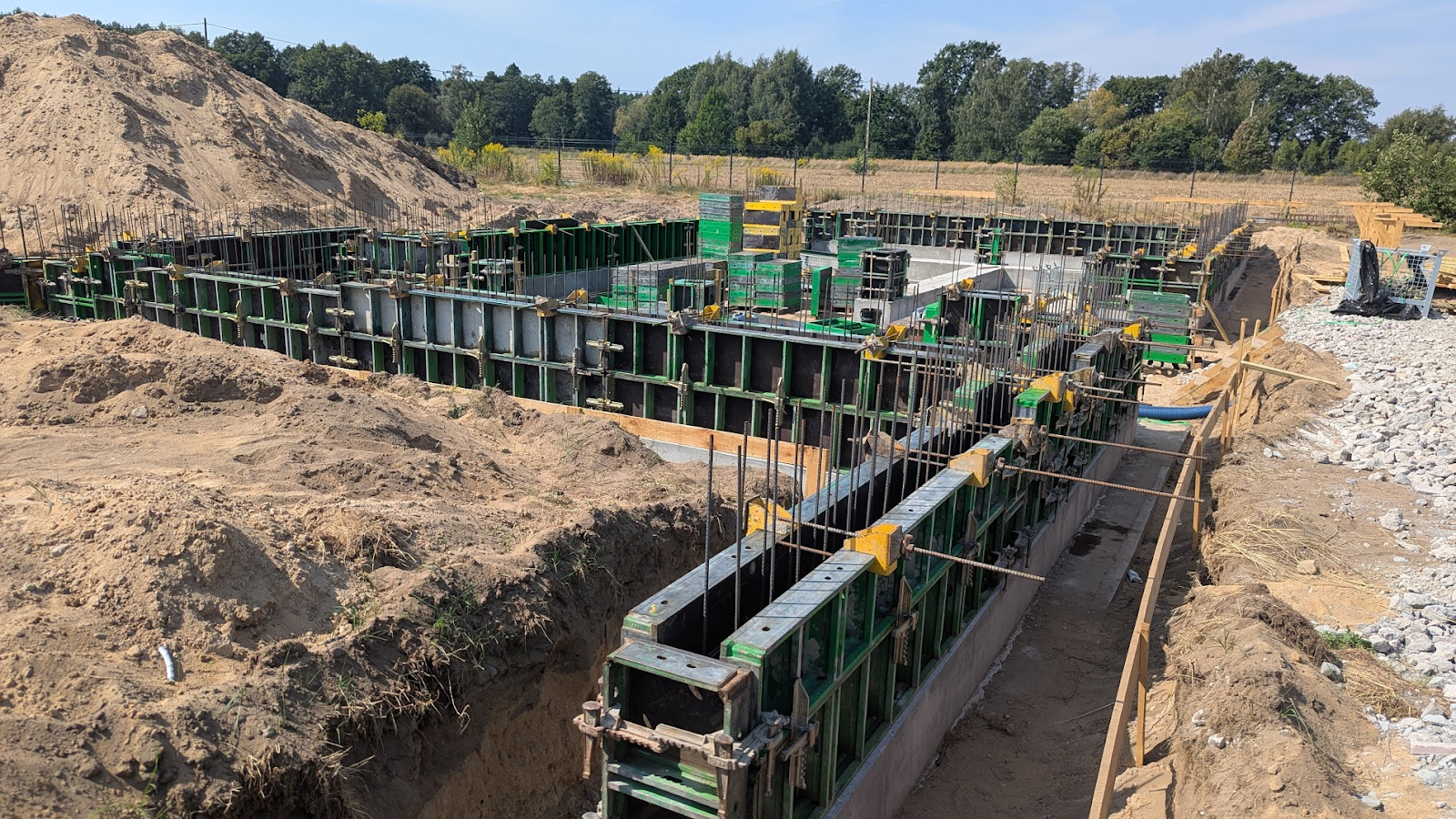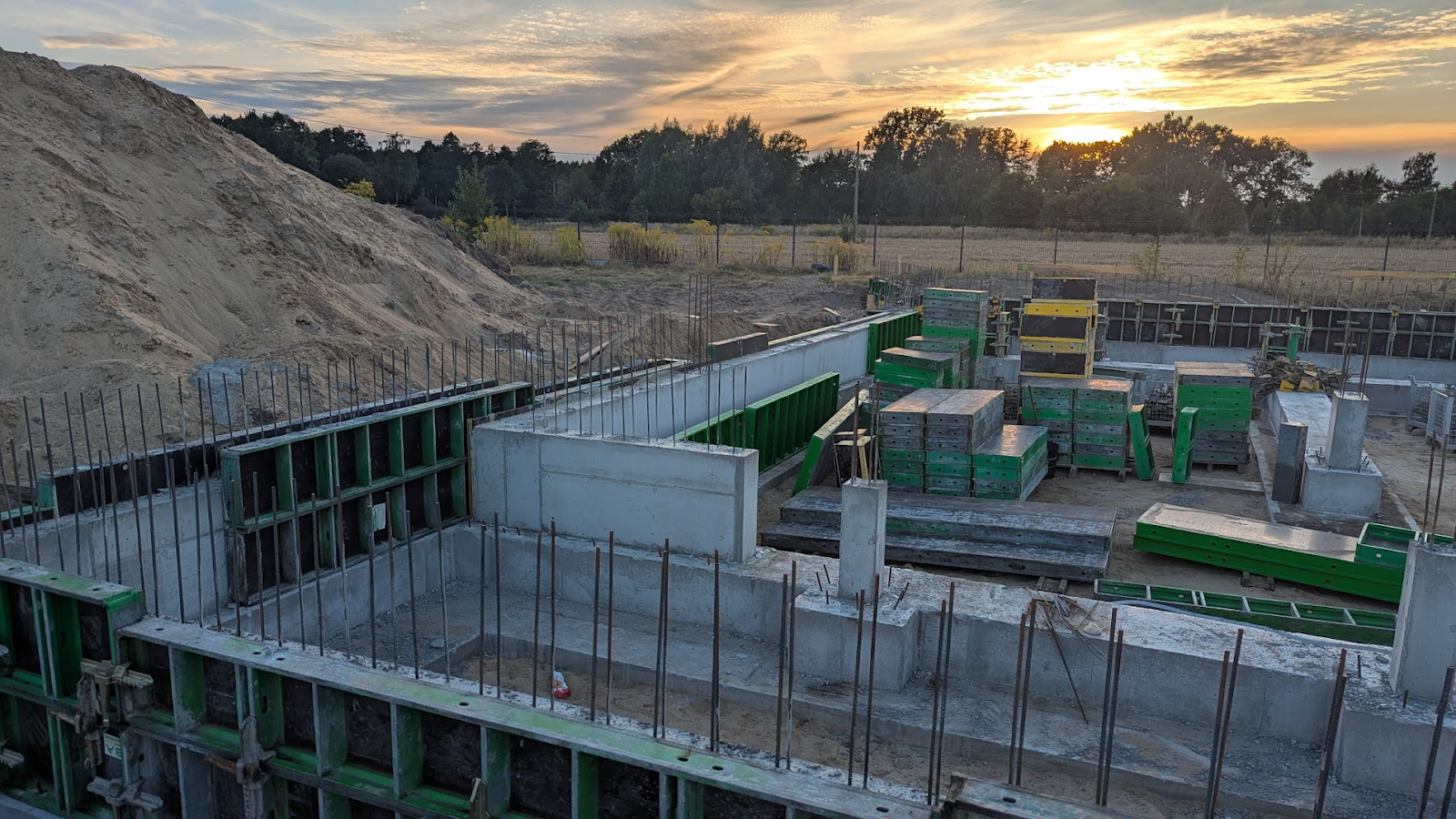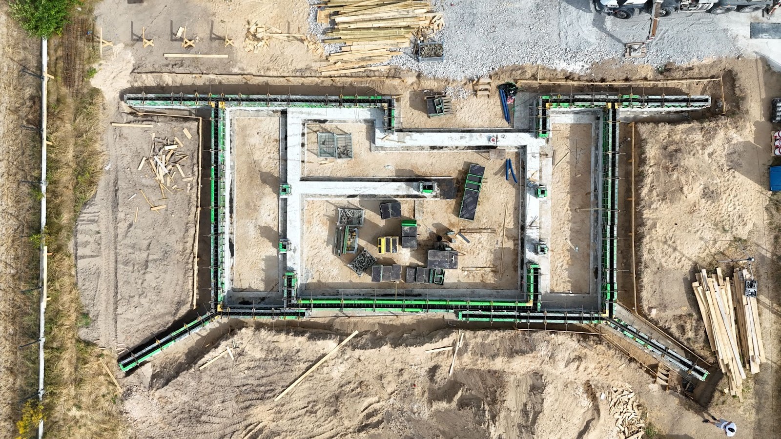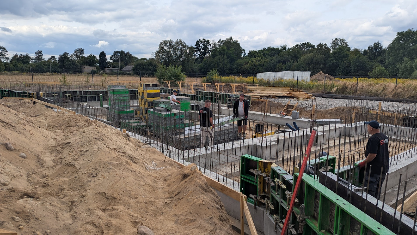 W naszym przypadku ściany fundamentowe są wylewane z betonu. Ekipa szybko przystąpiła do układania systemowych szalunków, które już po kilku dniach tworzyły solidny, „pancerny” obrys budynku.