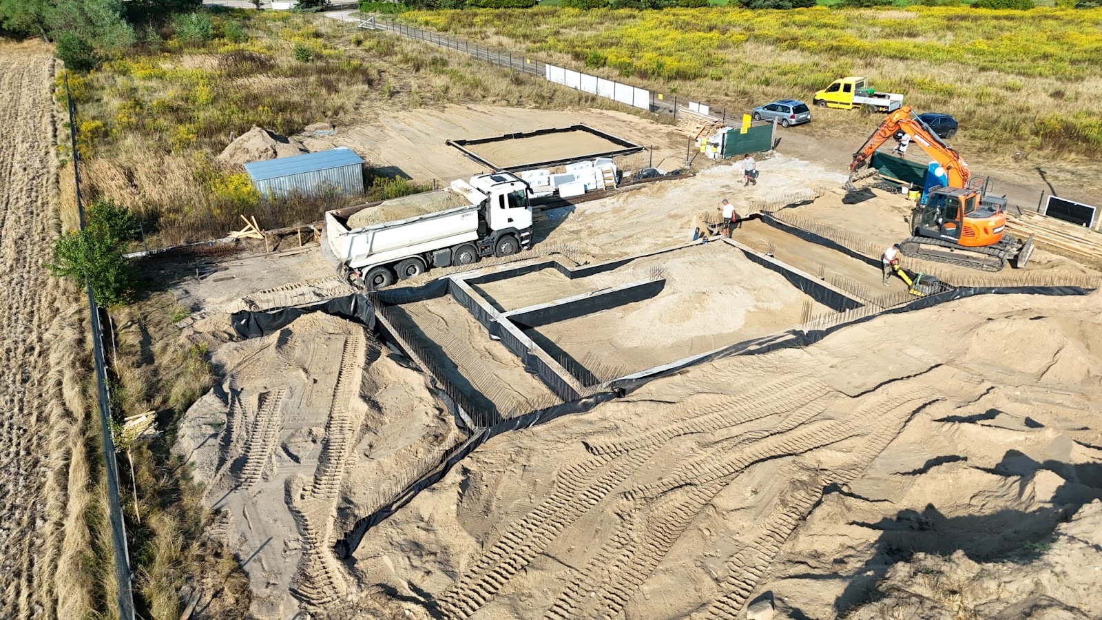 Po wykonaniu fundamentów przyszedł czas na zasypanie wykopów i zagęszczenie gruntu.