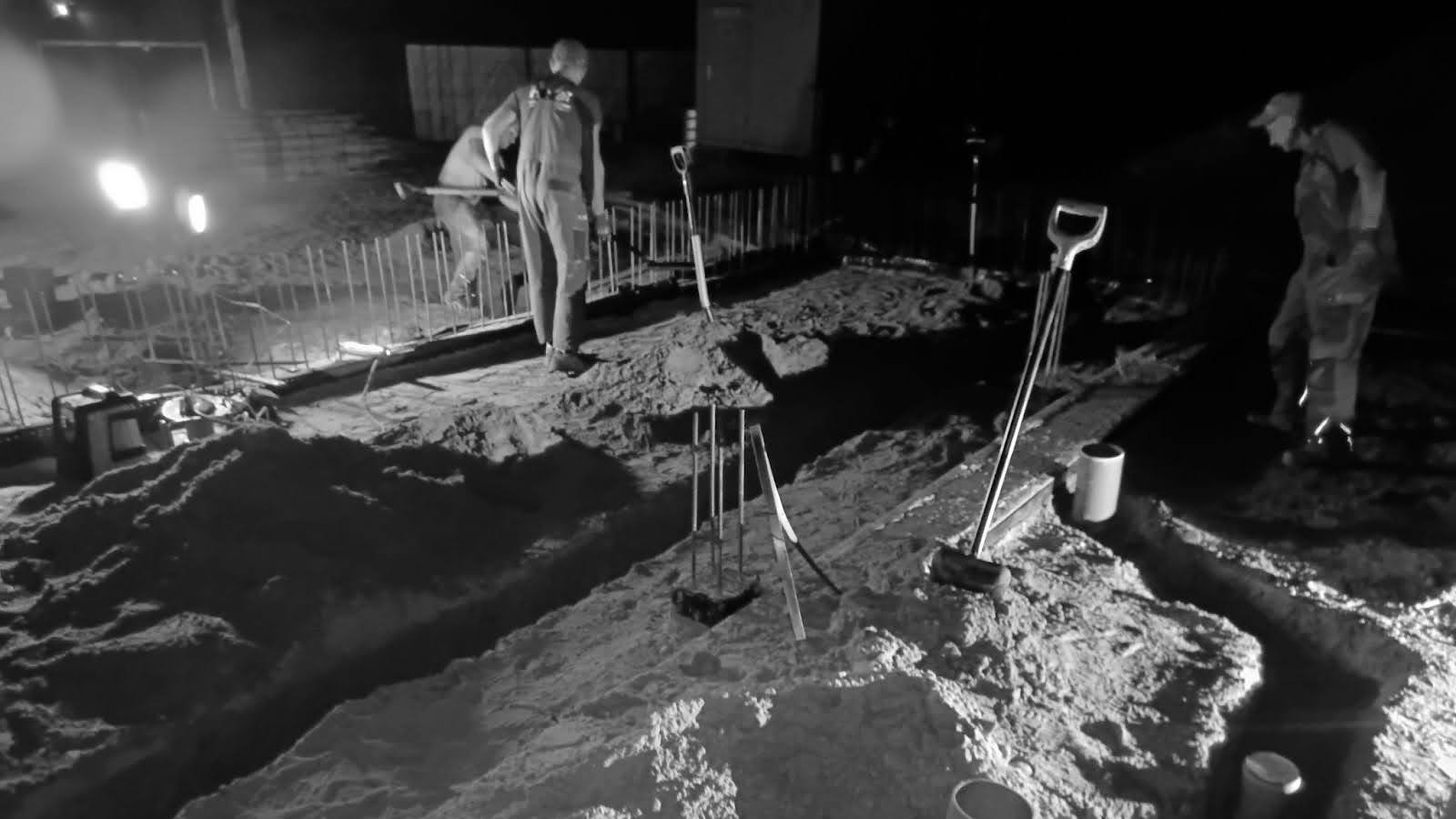 Przez tą komplikację ekipa pracowała do nocy, co zresztą obserwowaliśmy na kamerce. Na tym etapie ważne jest wykonanie spadków a także zakorkowanie pionów aby nie dostał się do ich wnętrza beton.